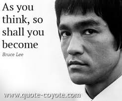 What you think you become or sometimes The mind is everything. This idea has biblical merit but the verse actually has a slightly different somewhat complicated meaning. As You Think So Shall You Be.